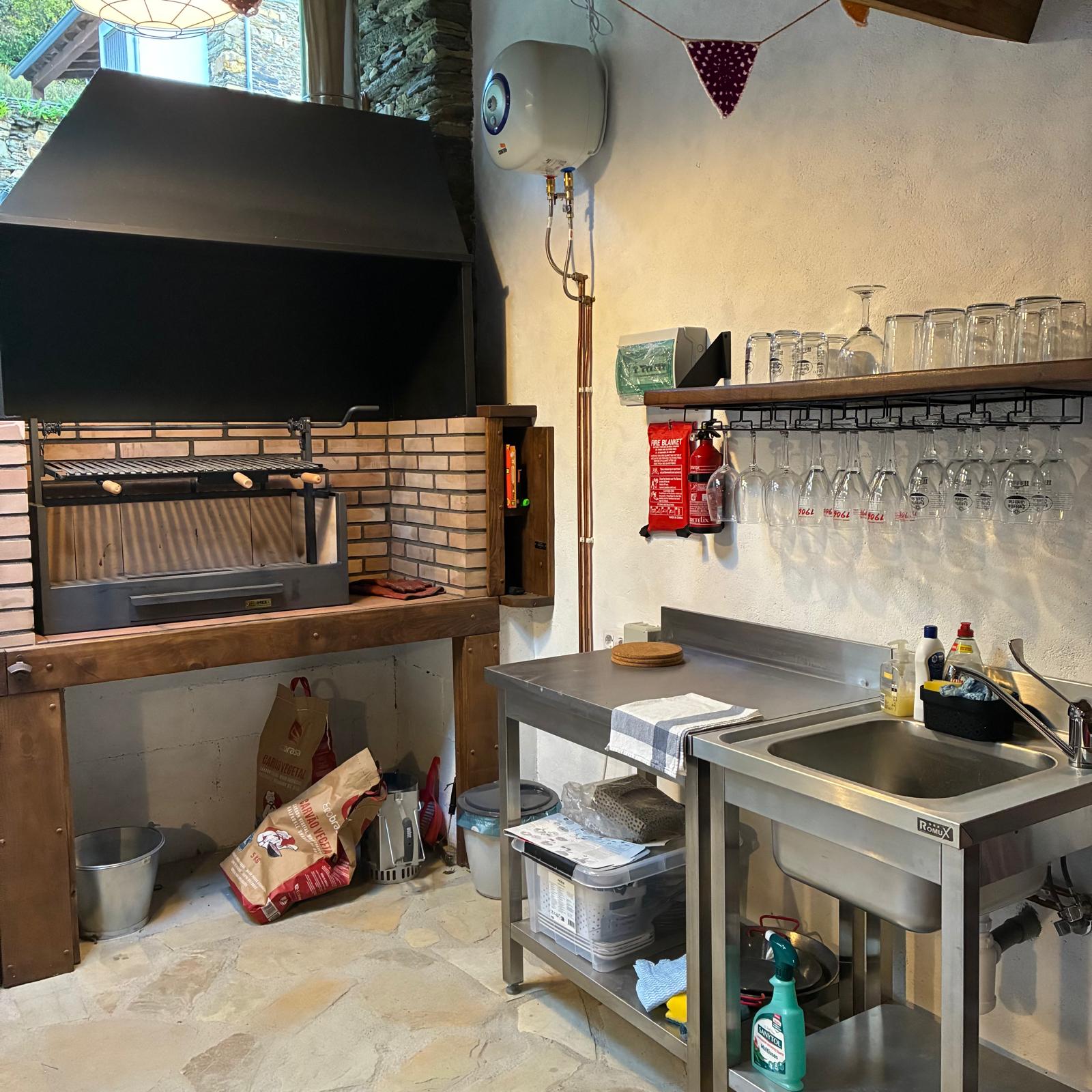 Entering the house under the artisan made canopy constructed from reclaimed beams, you will find a well appointed open plan kitchen and living room with downstairs cloakroom containing a wash basin and WC. The kitchen comprises an electric oven, ceramic hob, microwave and toaster along with an undercounter fridge/freezer and a slimline dishwasher. A well equipped kitchen has plenty of storage space and the centre piece is a handmade chestnut table constructed from old partitioning.
